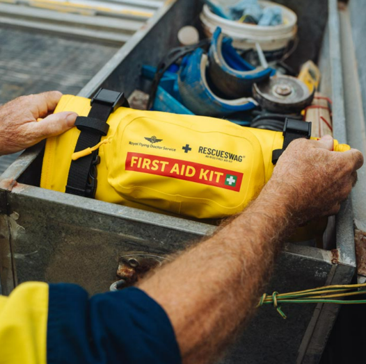 The Royal Flying Doctor Service Workplace Rescue Swag first aid kit includes a selection of medical supplies which meets the Safe Work Australia First Aid in the Workplace Code of Practice requirements to outdoor and remote level.