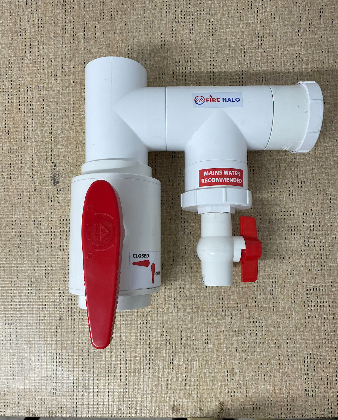 - For all other downpipes connecting to the gutter where the Fire Halo in installed, must also be replaced with a 90mm PVC downpipe, and again ensuring that the connection to the gutter is water tight. It will be necessary to block those downpipes as well, but only requiring the 90mm ball valve which can be purchased separately.