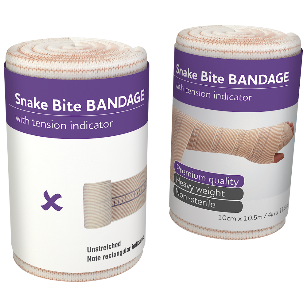 The AeroForm Premium Snake Bite Bandage with Continuous Indicators is a Premium Heavyweight Conforming Bandage. Perfect for use with the Pressure Immobilisation Technique, which is used for the treatment of all Australian Snake and Funnel Webbed Spider bites, Blue Ringed Octopus and Cone Shell stings.