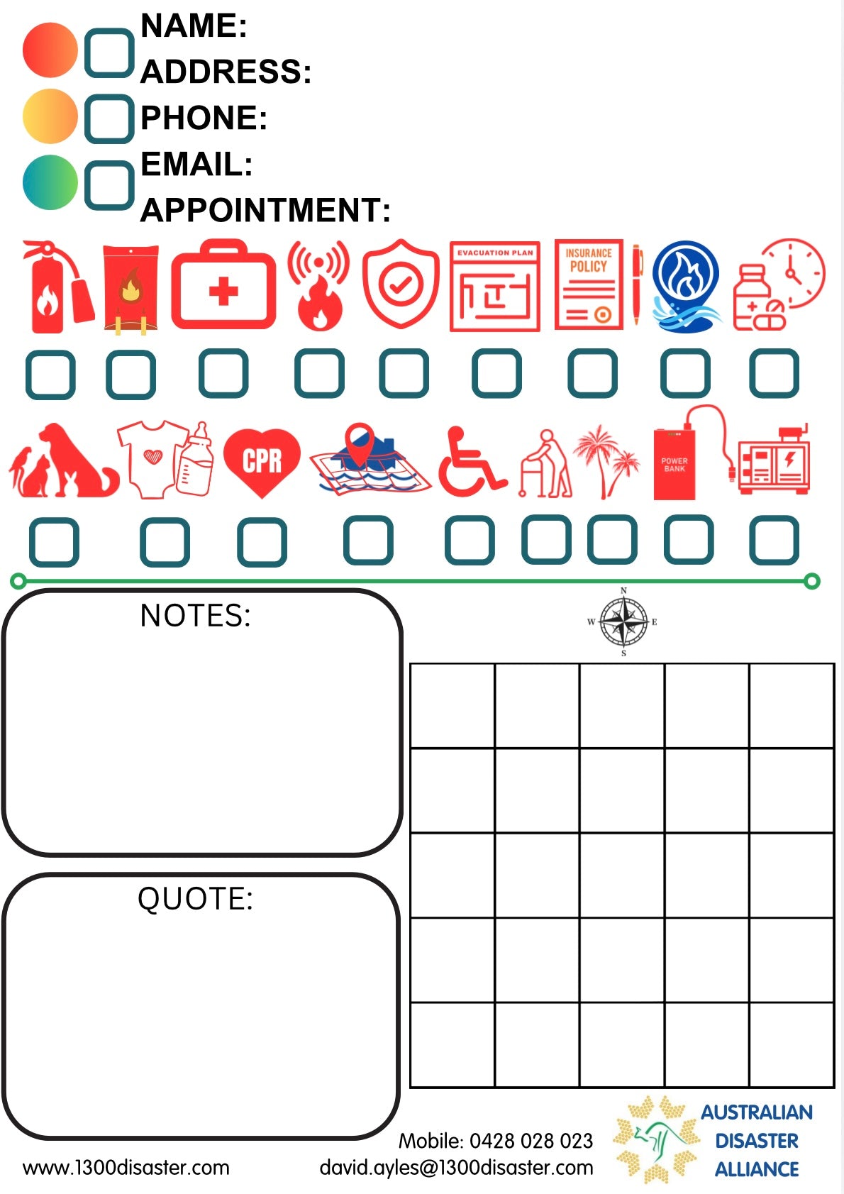 Within this GST Free, Tax Deductible*Resilience Passport, Personal Disaster Risk Report/ Action Plan and Annual Membership package you will receive: